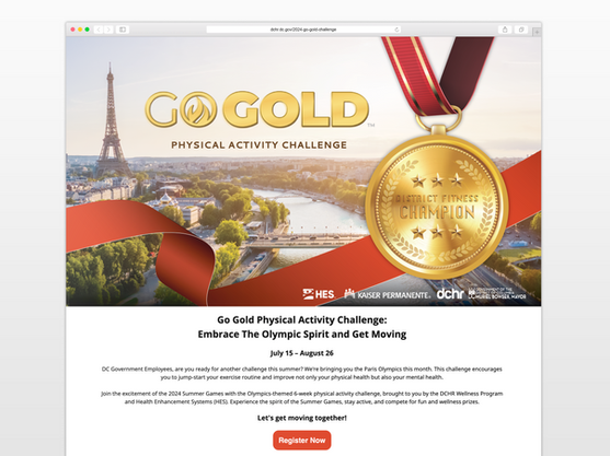 I lead the marketing and communications for all Employee Wellness Program Campaigns. My process begins with identifying the campaign's objectives and employee needs, followed by developing engaging visuals, a comprehensive marketing strategy, and a detailed communication timeline. This includes managing District-wide email campaigns, creating digital and print graphics, and designing and launching web pages on the DCHR website. I collaborate closely with the DCHR Chief Wellness Officer and health providers to refine designs, oversee production, and ensure alignment with DCHR leadership and the Joint Information Center (JIC) approval processes. Post-launch, I assess campaign effectiveness and gather feedback for continuous improvement. This approach has significantly increased employee participation and engagement, contributing to the achievement of the Aetna Gold Winner Workplace Well-Being Award.